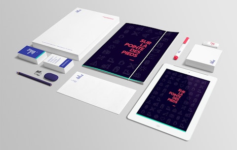 The On the Tip of the Toes Foundations’ new graphic identity is first and foremost made up of a brand evolving in a graphic environment with multiple variations. The branding is essentially typographic, highlighting the Foundation’s name, for immediate impact. Its vertical alignment gives it an originality that helps it stand out on first look, and evokes the idea of pride (standing up straight), momentum and pushing oneself (as if moving forward). The "Tip of the Toes" is suggested, and we can recognize in the inclination of the design the notions of balance and fragility, counterbalanced by the little line at the bottom, representing a certain stability. The rounded font brings a playfulness and warmth, while remaining timeless.